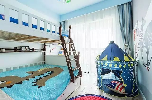 △儿童房有一股冒险的气息,仿佛就要骑龙去冒险了。强推小帐篷,玩耍新去处!
