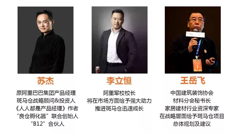 斑马仓的助阵嘉宾汇聚互联网与家装建材行业精英人才,他们来自阿里以及中装协会,斑马仓因他们的战略指导成为业内成长最快的互联网平台!