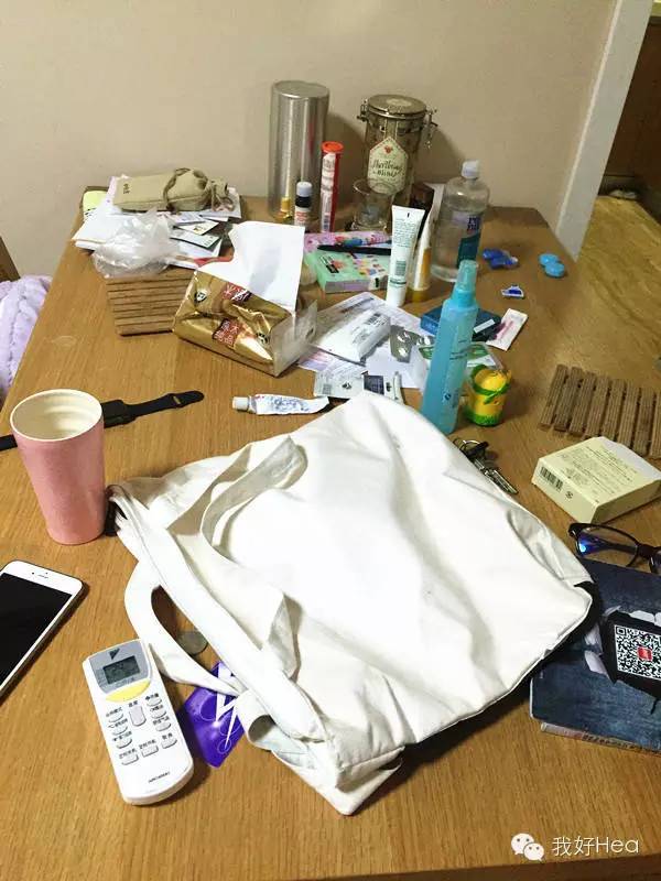 餐桌往往是我们回家后接触的第一张桌子,所以我们习惯将外面买回来的、自己身上卸下来的东西先堆放在餐桌上,比如这样: