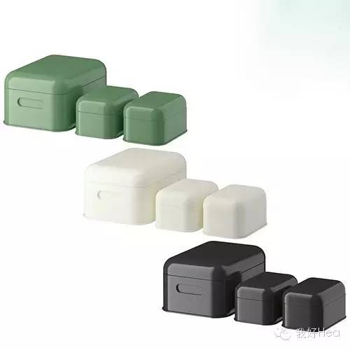 绿色收纳盒是铁质的,一套三件,我一眼就看中它圆滚滚的样子,还有白色和黑色