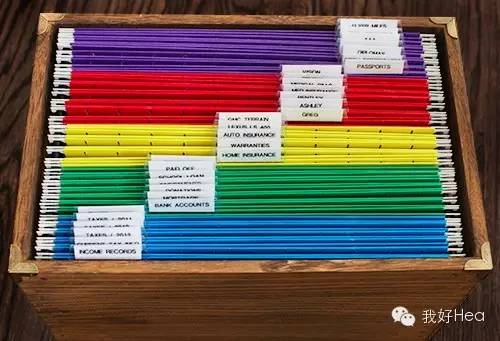 随时需要取用的文件要固定放在一个地方,用不同颜色的文件夹来标记更清晰
