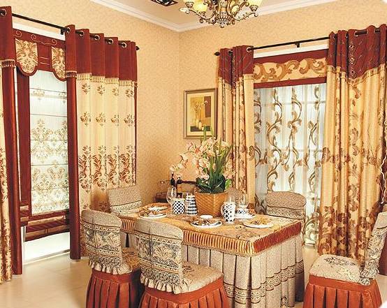 中式传统风格的家居装饰体现的是一种端庄雅致,意境悠远。与这种风格相适应的布艺窗帘,要体现中国传统的古朴雅致,采用传统的缠技法、小团花纹、落花流水纹等。除此之外,在挑选布料时选择传统的织锦缎、蜀缎、提花贡缎等比较合适。