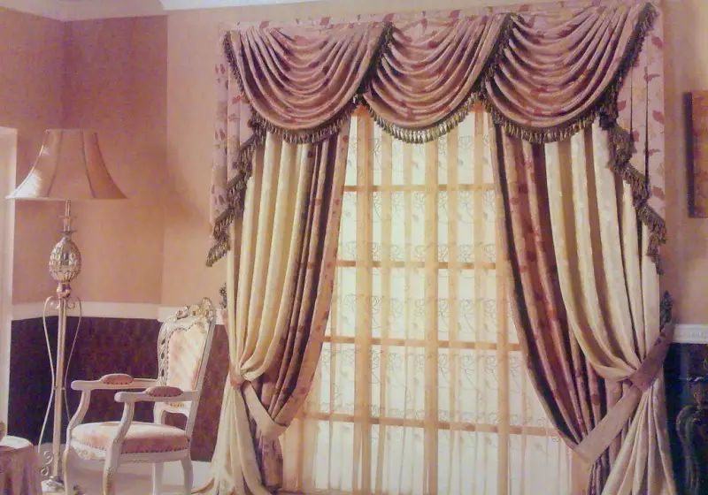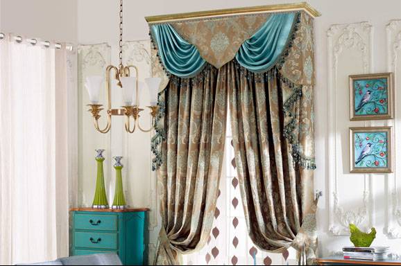 这种式样要复杂一些,但装饰效果更好,它可以遮去比较粗糙的窗帘杆及窗帘顶部和房顶的距离,显得室内更整齐漂亮。