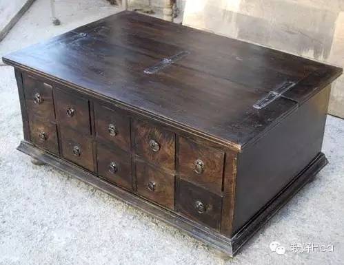虽然是茶几但实际上有点像百子柜,正面有很多个小抽屉