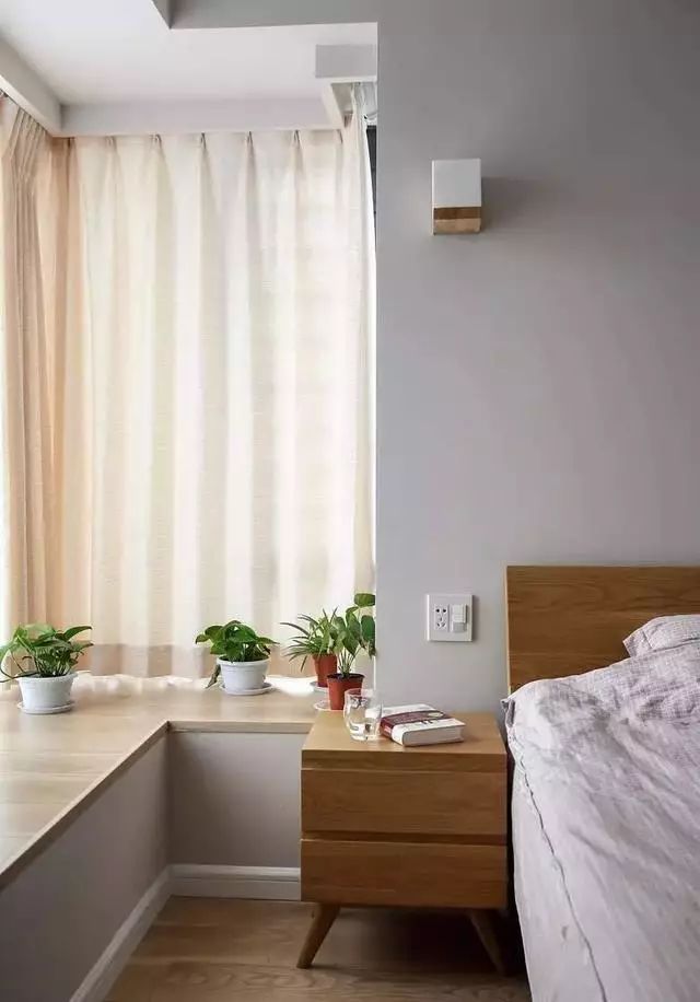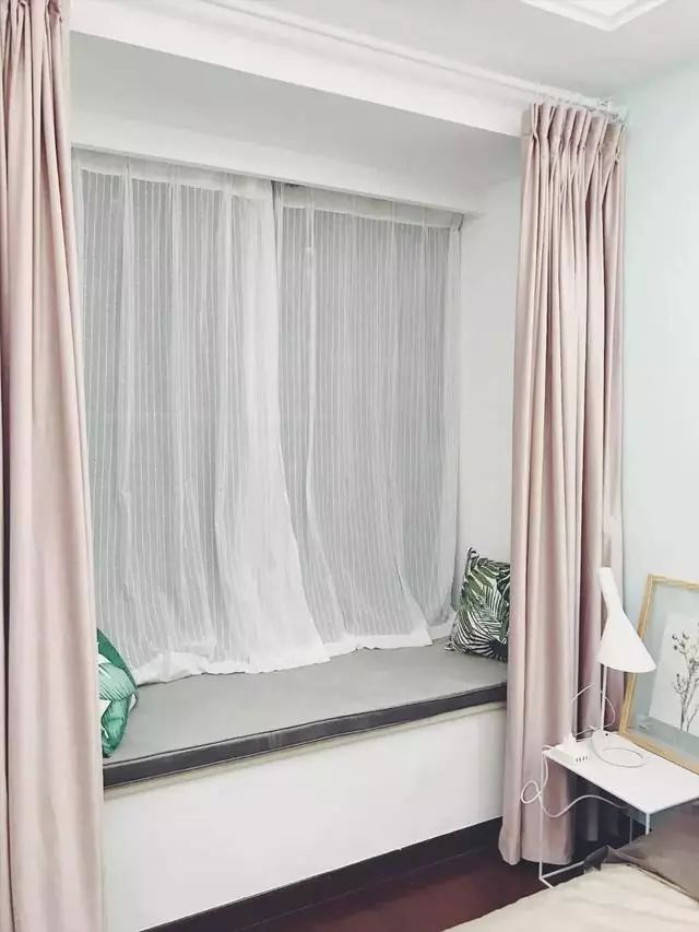 ▲纱窗与纯色窗帘不仅让这处飘窗美美的,也让卧室变得美美哒。