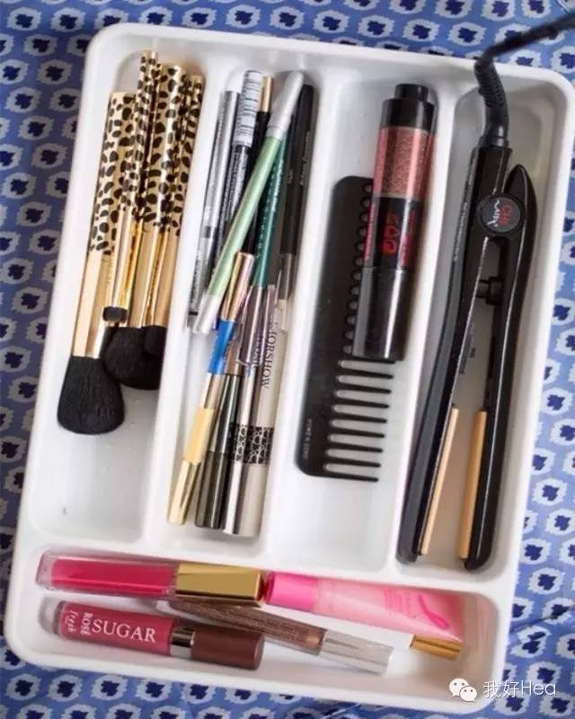 收纳化妆工具的原则就是:哪里使用,哪里收纳,常用的东西不妨多收纳几处,方便取用