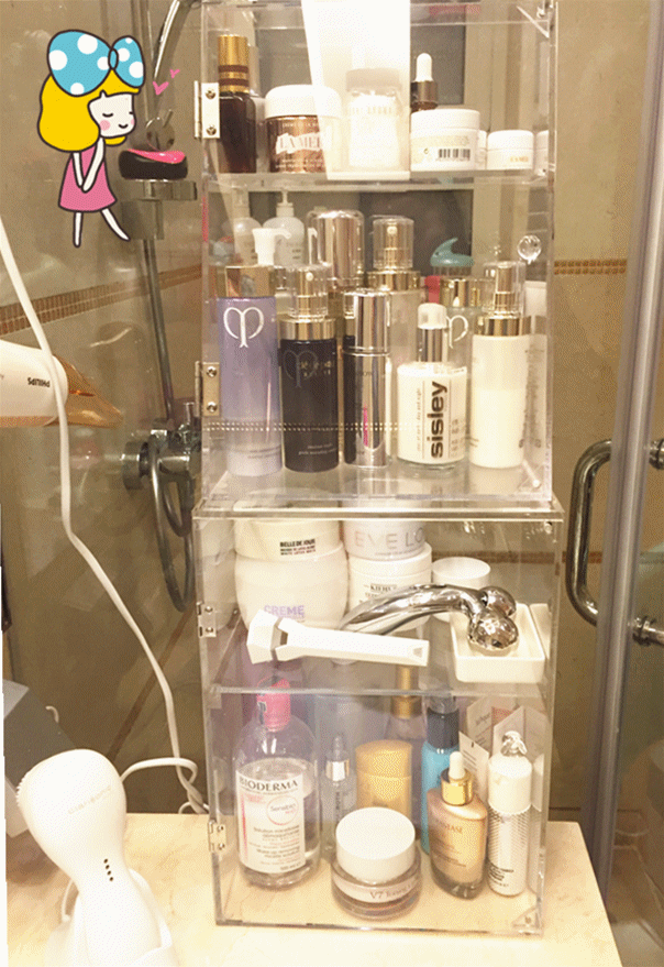 对于瓶型的化妆品,闺蜜妮妮选择了梯形面的亚克力收纳盒