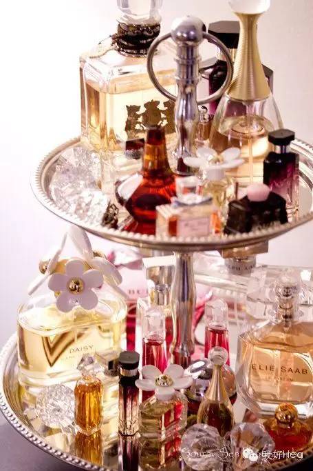 香水是当之无愧的家居装饰颜值担当,用复古托盘盛起来摆在卧室一角,美得心都醉了