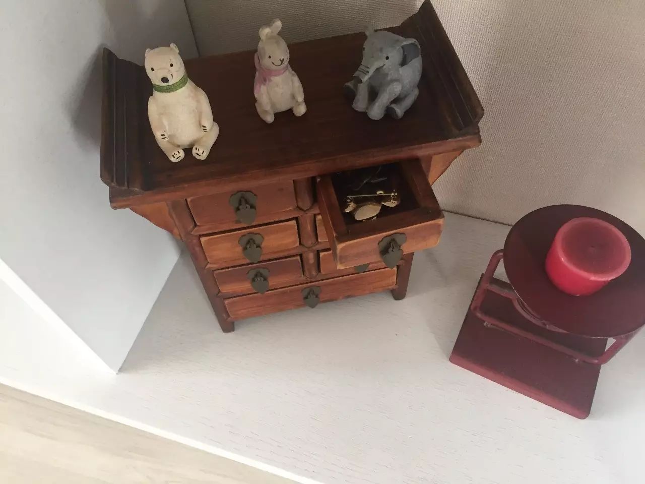 17、女生喜爱的收纳,被放在这个古色古香的类似中药铺药箱的容器里。