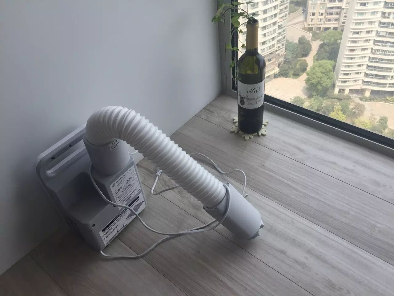 22、衣帽间的飘窗,也要绿意盎然。用一个红酒瓶当作花瓶吧。