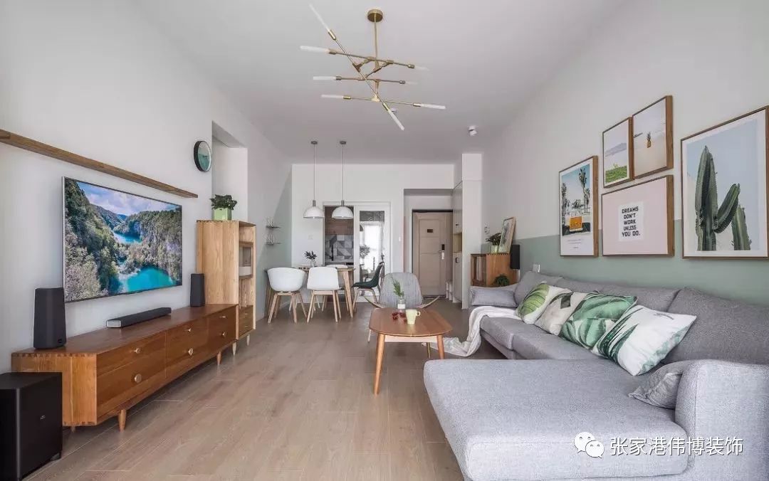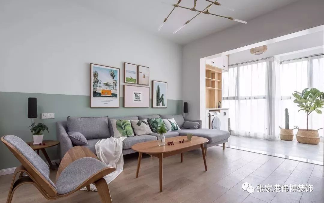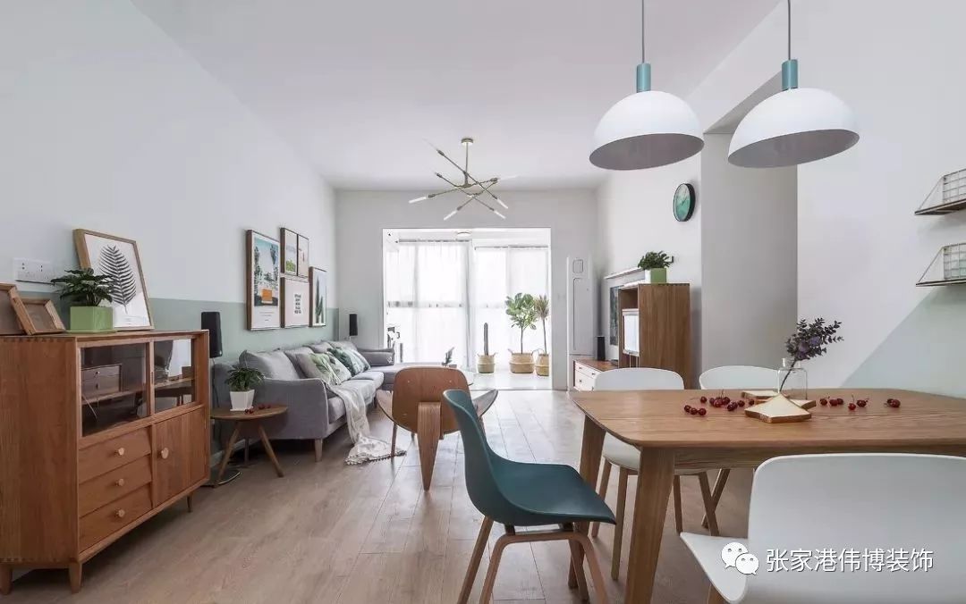 ▲整个空间干净清新,以白色为基调,辅以木色与浅绿进行点缀,营造舒适放松的居家氛围。