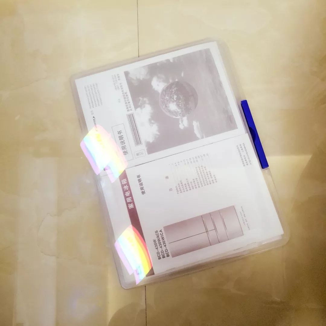 说明书、保修卡集合在一起,放在透明的文件盒里。这个还是学生时代买的收纳产品,没想到用到现在,我也算是很爱惜物品的乖宝宝。