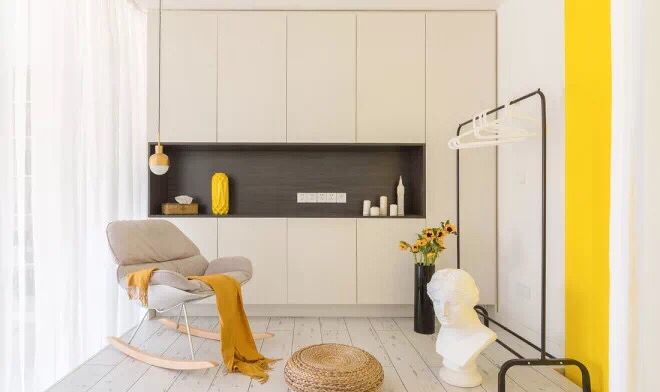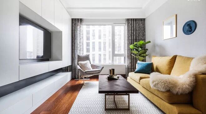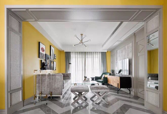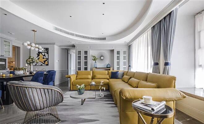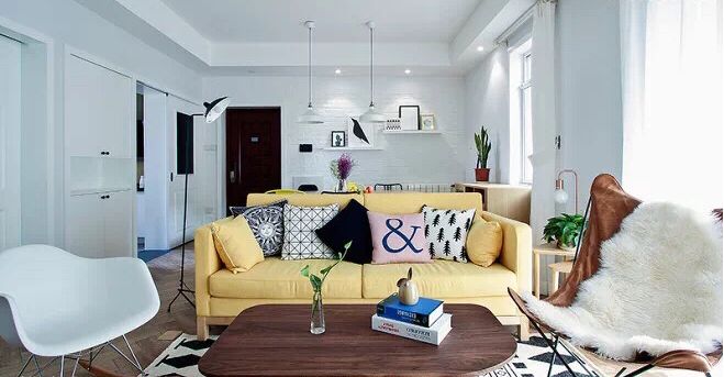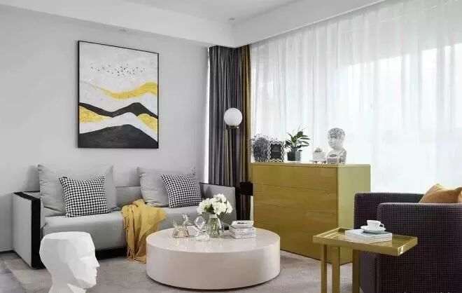 用黄色点缀的空间它除了提神之余也可以让家居环境散发出温馨 活力的能量感客厅类干净明快的浅色系墙面搭配了黄色的沙发让空间提升了质感姜黄色和墨绿色的碰撞充满个性给予了空间更多的时尚气息客厅整体色调偏素雅点缀少量黄色使空间更加富有活力少量的黄色空间占比小份额却大大改善了空间灰色度的平淡在干净的底色中明媚