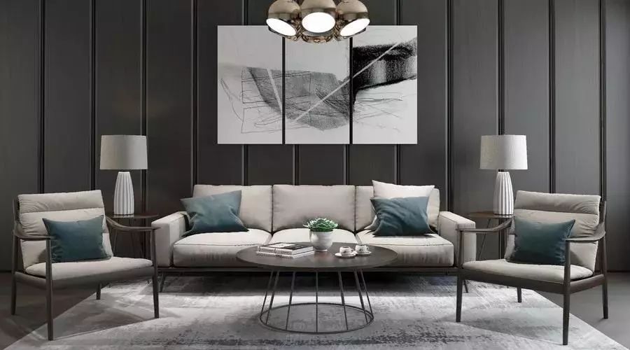 以沙发围绕的茶几为中心