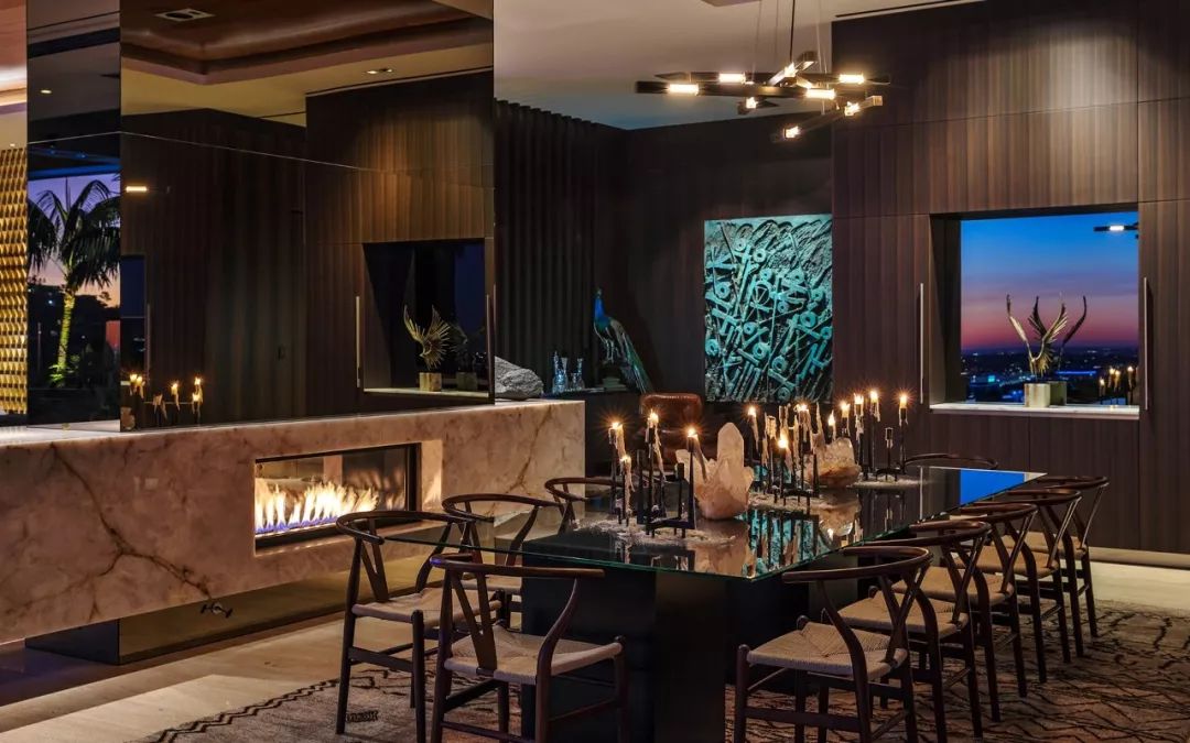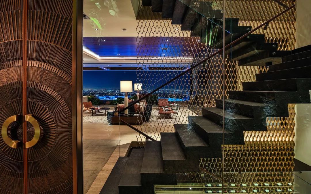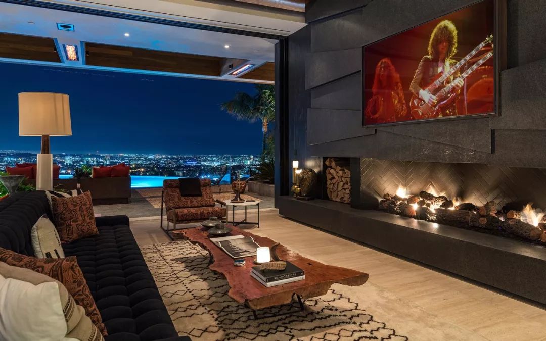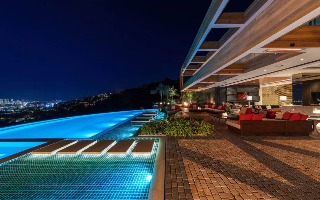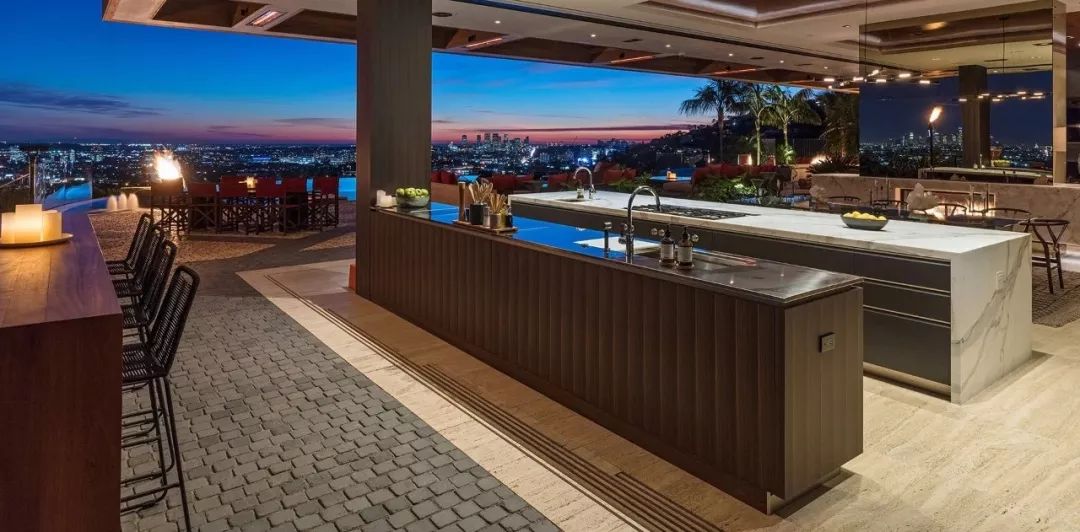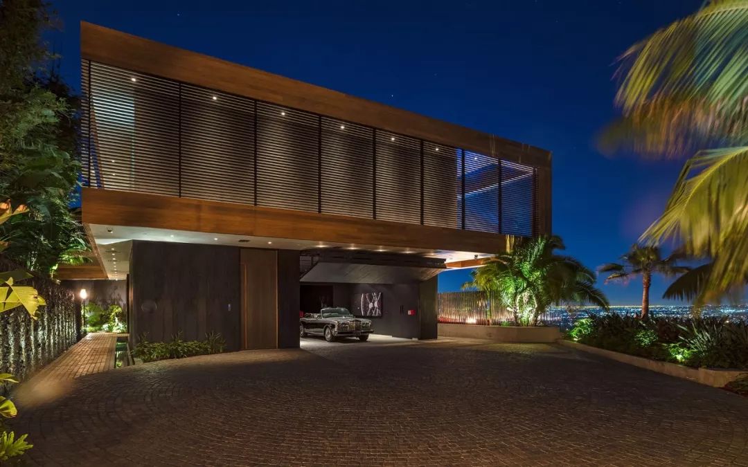 摇滚别墅Lenny Kravitz HomeLenny Kravitz (兰尼·克拉维茨)这位歌手以他同名的公司在室内设计界为自己赢得一席之地这个建筑的形体非常简单一个两层的长方形盒子和一个半椭圆形的泳池组合而成外立面有着通透的条木车库的大门仿佛一个暗门折叠起来才能找到车库的入口放下来与外墙融为一