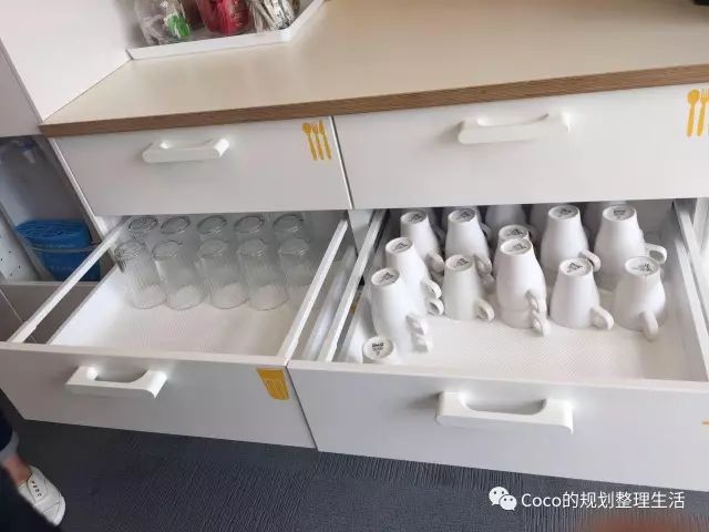 拉开抽屉,上升星座处女座的Coco都要感动的流泪了。看到了吗?连马克杯的把手方向都是统一的。