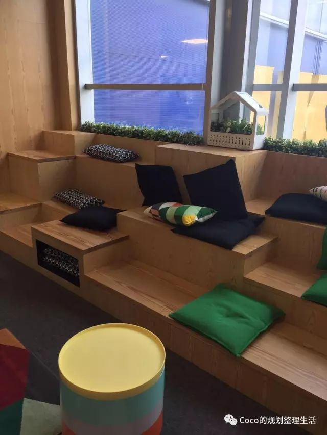 宜家的会议室多种多样,下面这个“会议室”(开放空间),可说的不多,只有一句话:你可以坐着开会,站着开会,躺着开会,打着滚儿开会……