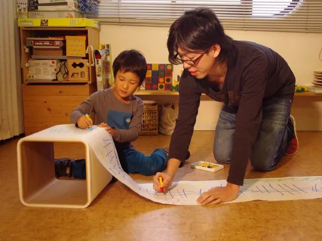 除了画画,还有其他实用功能。中间的镂空处能堆放物品,客人来了又可以将儿童桌当椅子用。真·十全十美桌。
