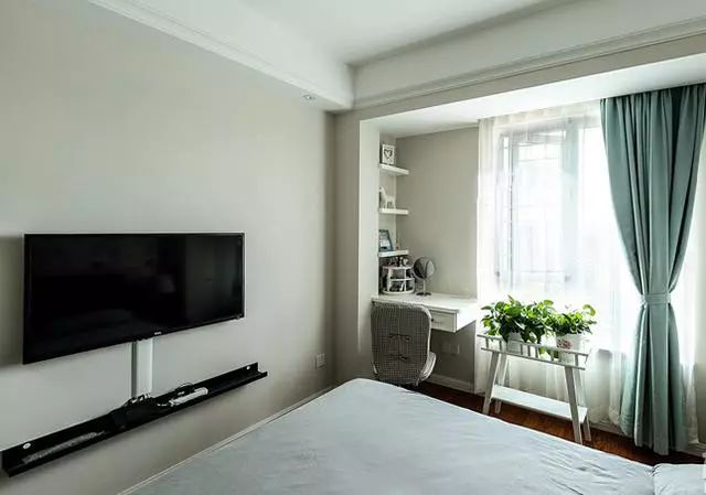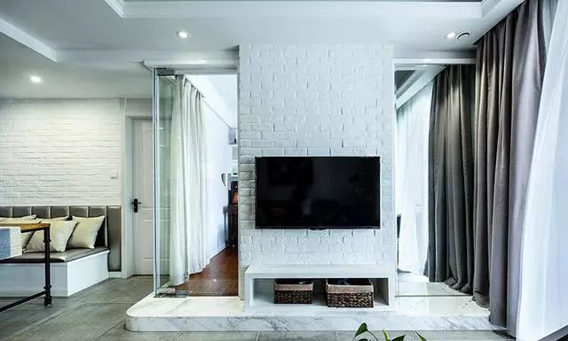 文化背景墙后面就是小书房,亮眼的是只有中间部分是文化墙,两边是玻璃,这样让客厅视线更宽更广,很大气不拥挤。