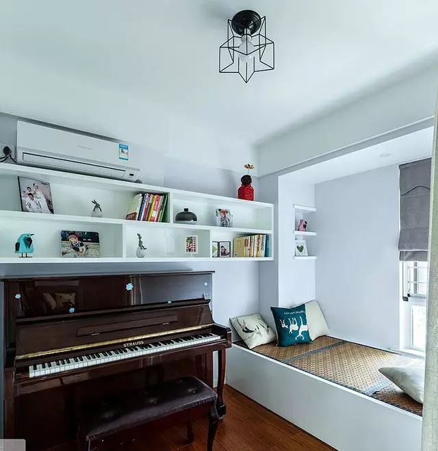 这个就是电视背景墙后面的小书房,里面放了一台钢琴,还有个小床,很舒适。