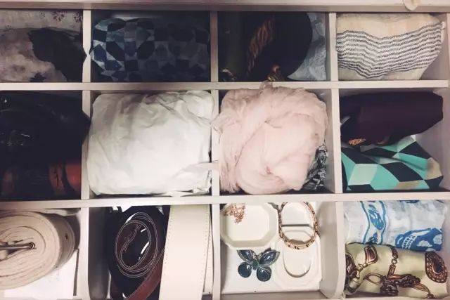 Sophie 的首饰、丝巾等杂物都放在小格档里