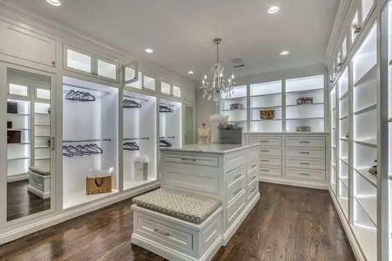 组合式:既有衣帽间,也有顶天立地大柜子,还有附加的一些小柜子。