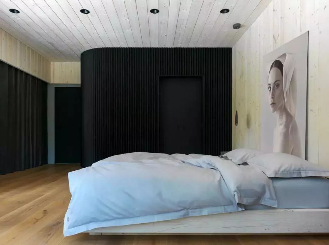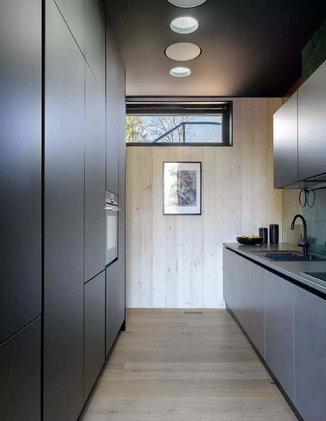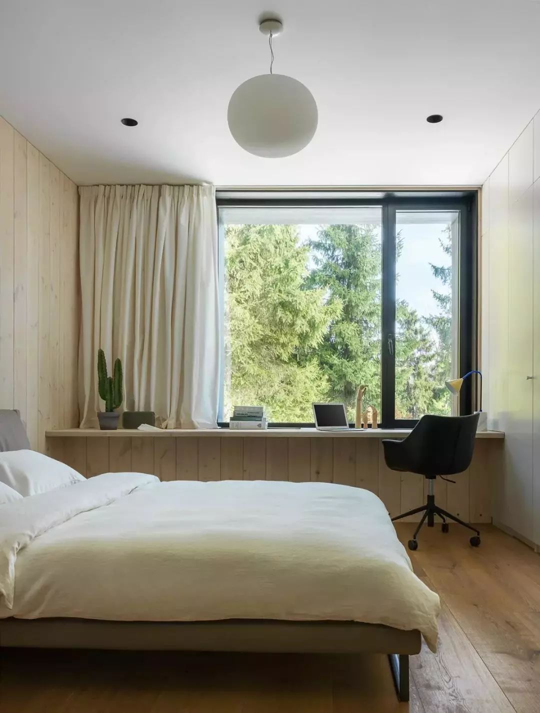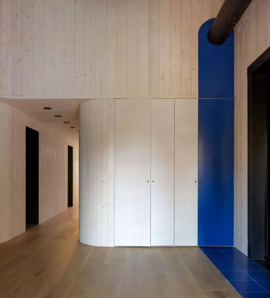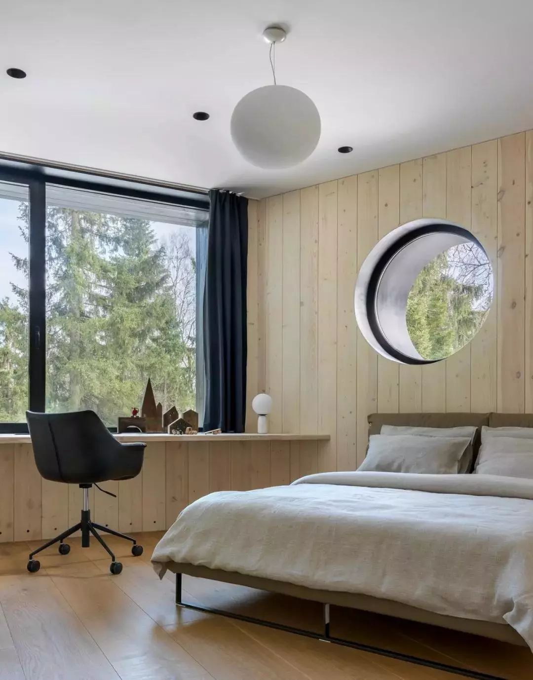 大多数人喜欢原木是因为喜欢它那种不可复制的美感那种岁月留下的痕迹与之相处感觉很舒服这个住宅就是如此客厅大面积的玻璃窗将外面的美景引入室内那郁郁葱葱的绿植颇有一种别样的舒适墙面地板茶几毛地毯各处细节设计都做的非常到位壁炉周围的翡翠绿瓷砖更是点睛之作深浅不一的色彩完美的呼应了户外的绿植色调客厅设计将现