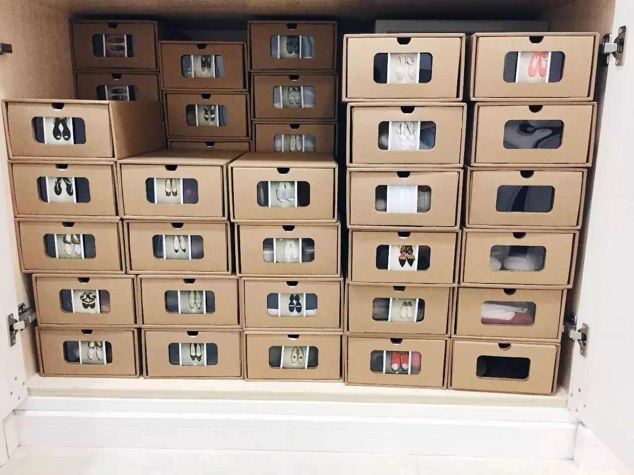 用统一的鞋盒要比大大小小形状不一的鞋盒省空间