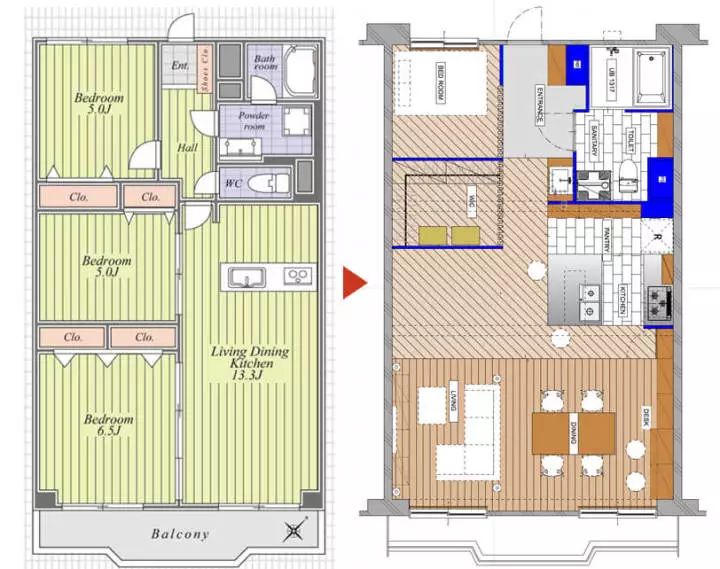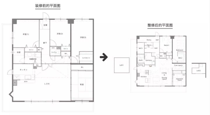 这三个案例结合起来,就是一种非常典型的日式装修样板:打破墙壁的桎梏,为小空间增容,加强各个空间的交流;