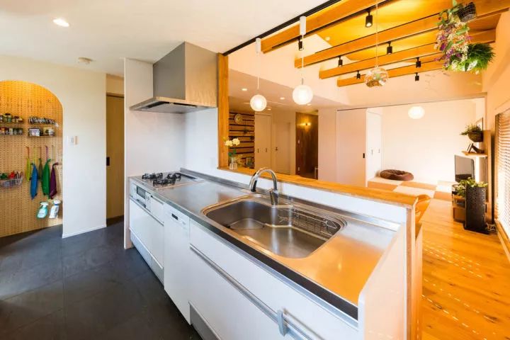 ▷经验二 家中最重要的是起居空间,起居空间中最重要的是餐厨。翻新的时候,设计师参考了很多厨房改造案例,思考怎样在有限的空间内,打造游刃有余的生活便利。
