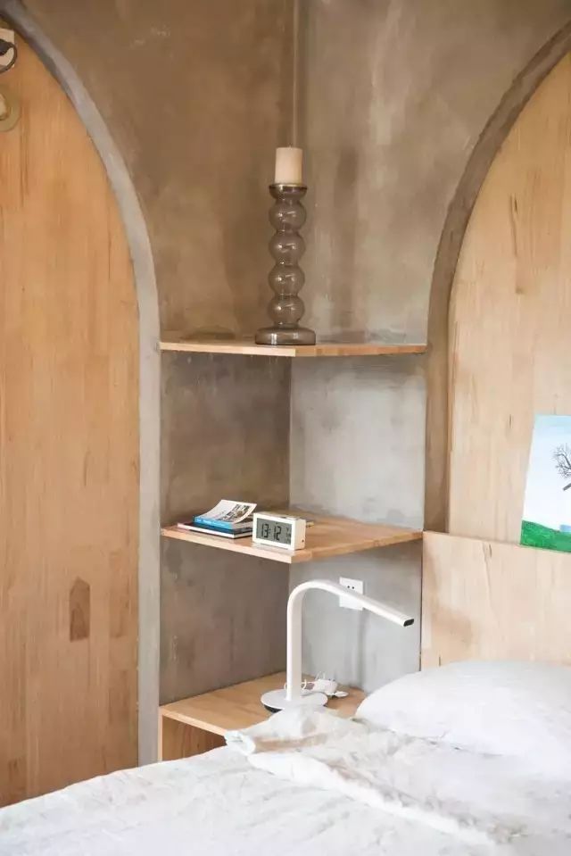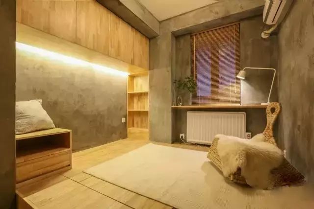 墙面不是刷漆,而是货真价实的水泥,改造时要先铲掉原先的墙面,露出基层,在基层上挂网,然后全屋刷水泥,再用水泥固化剂来固定,效果比起水泥涂料自然很多。