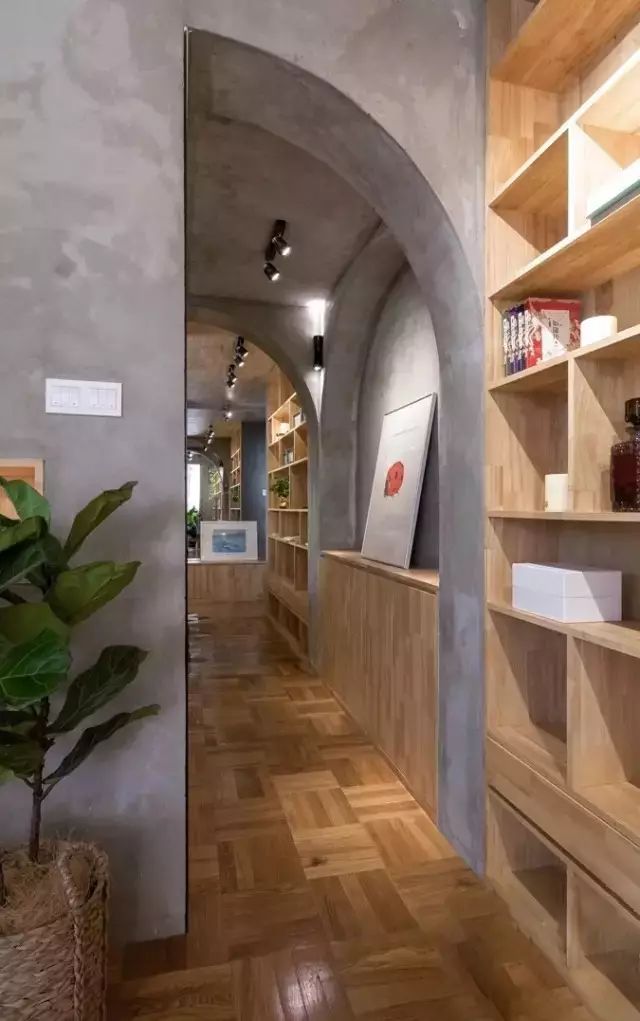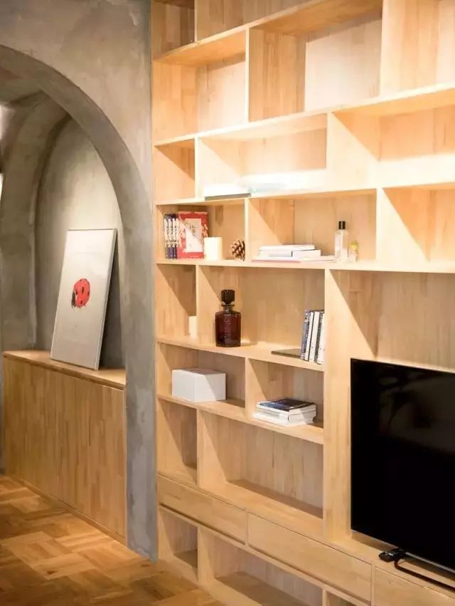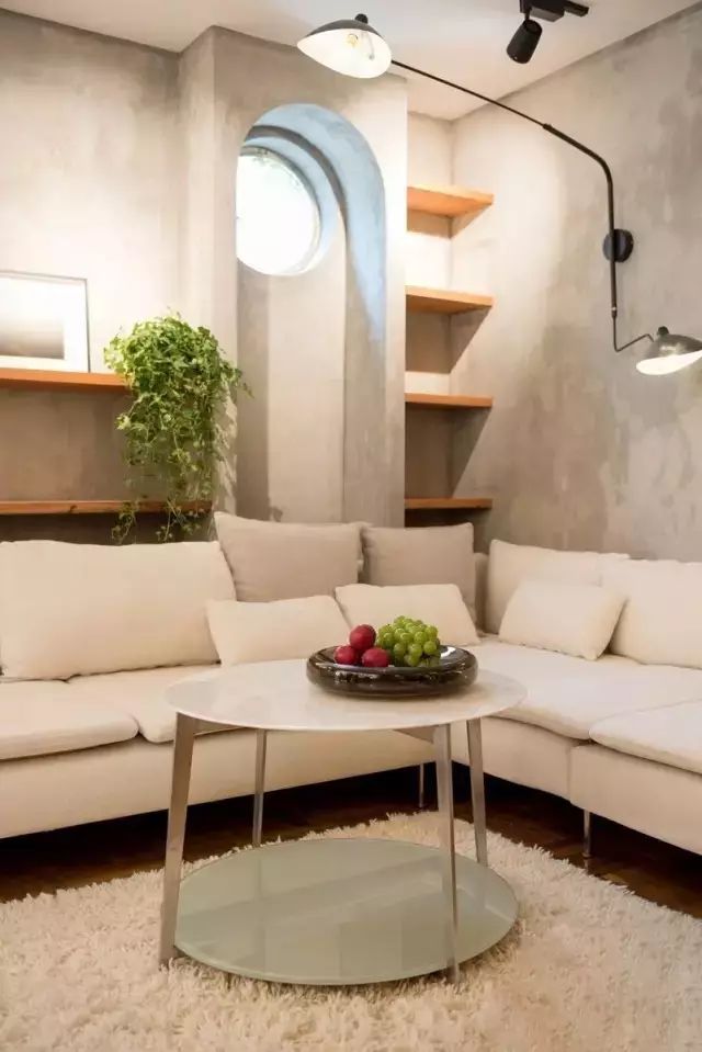 在家里运用了很多圆弧的元素,但并不是凭空设计的,这个房子原本就有很多圆形的元素,包括阳台的半圆窗户,客厅里的高窗都是原来就有的。