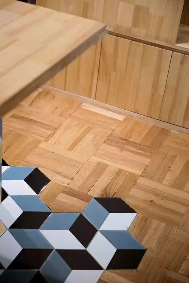 地砖和地板的无缝拼接需要先铺地板再铺地砖,铺设地砖时要先计算好地砖与水泥的厚度,用水泥找平再来贴砖。