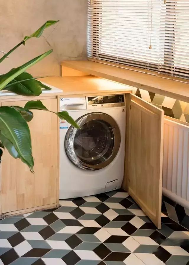 因为将阳台并入了客厅,所以衣物的晾晒就用烘干来代替,现在很多品牌,像松下、海尔、西门子都有推出的洗衣烘干一体机,大家有兴趣可以了解了解,如果只能靠晒太阳来杀菌的话,那要科技干嘛……