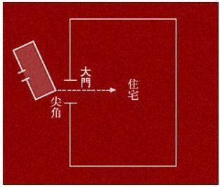尖角煞在现在建筑风水中是最为普遍的一个问题了,如果你细心观察,就能够发现,这些情况出现的频率很高。尖角煞的形成有些是因为修建时过分考虑到面积的规划,而些是因为房屋本身的设计缺陷。一些不规则的格局出现,斜角对冲,导致有些房屋正对另一建筑的90度直角。