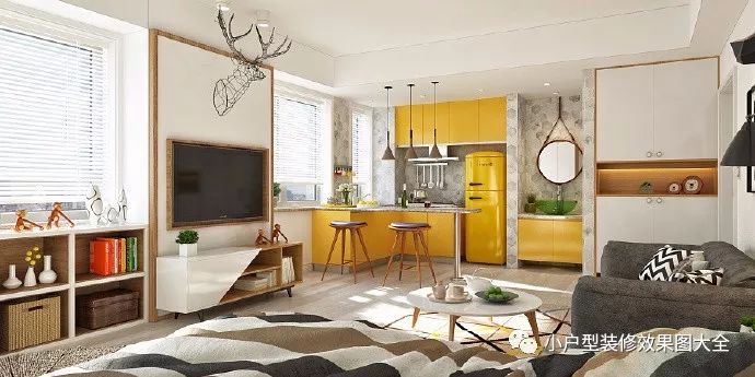 一套以黄色为主打色调的小户型装修效果图欣赏,默默地抱走收藏!现代简约风格添加黄色的主打色调,清新的装修效果,能够延伸视觉效果,看上去让人轻松舒适。