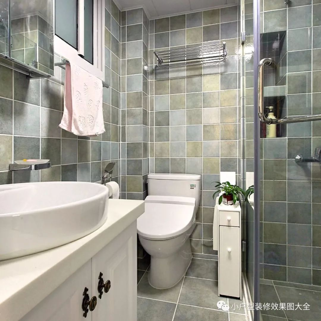 卫生间里浅淡颜色的小墙砖很是好看呢,干湿分离也是做得很到位呢!
