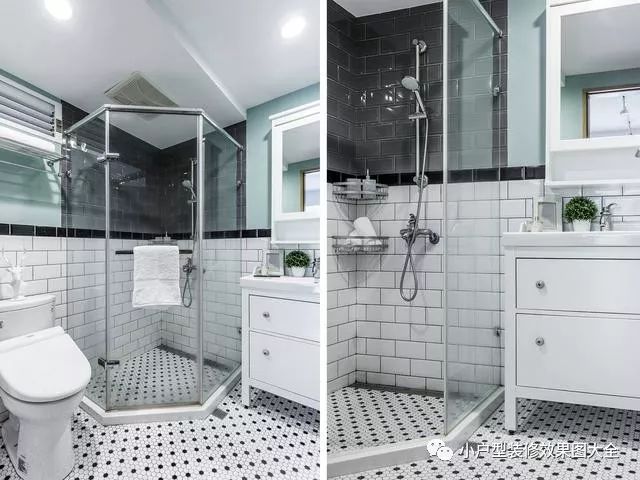 带有纯粹效果的黑白色搭配,透明玻璃门是其中的隔断门,卫生间里不但对干湿分离做了很好的处理,整体的效果也是很干净明亮的。