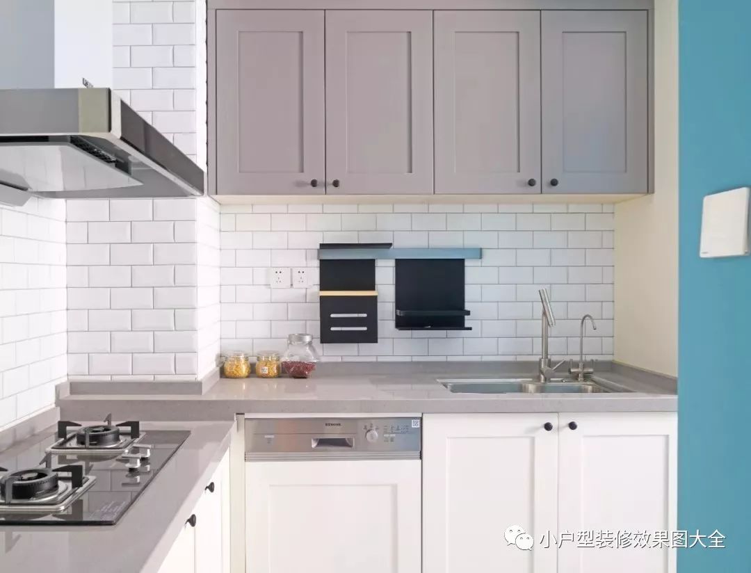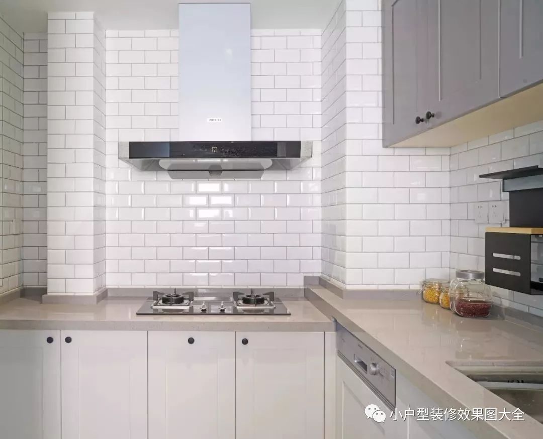 厨房里白瓷砖的整体墙壁显得整个空间很是干净整洁,厨房的面积虽然并不是很大,但是功能区很是分明,实用性很棒的设计。