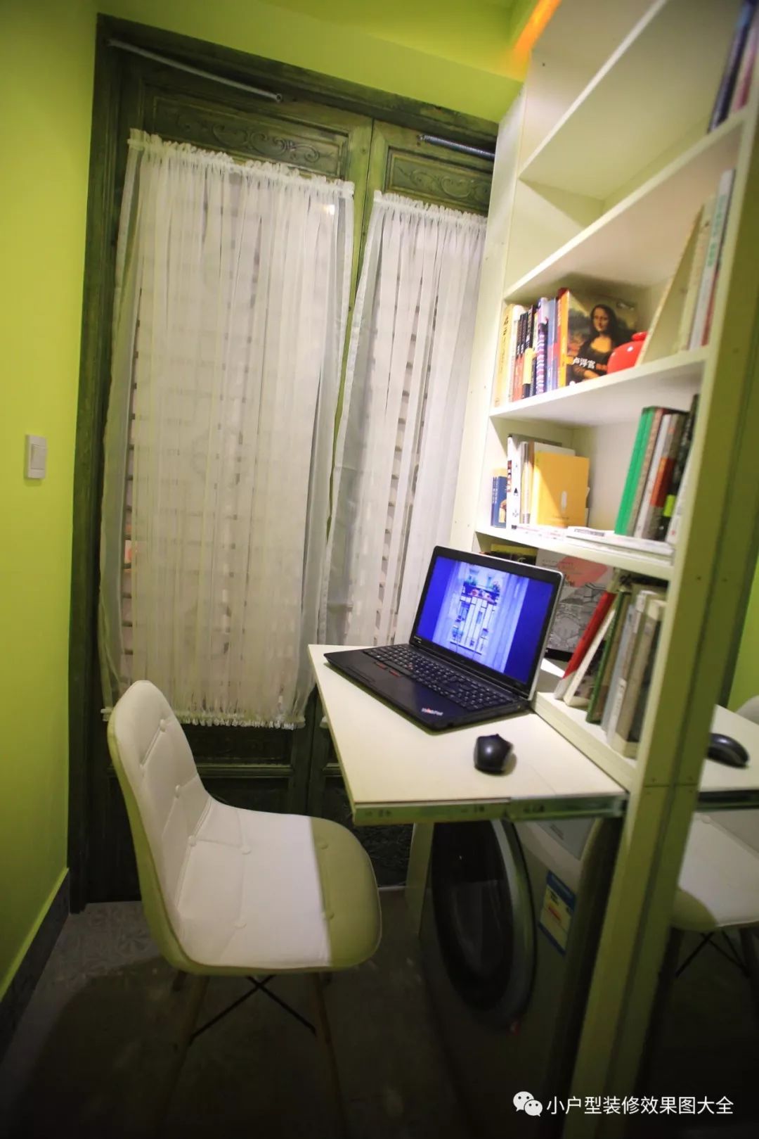 卫生间和书房是设计在一起的,卫生间门口还有一个可收缩的书桌设计。