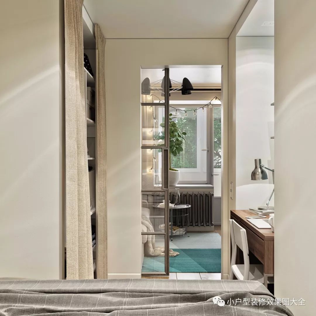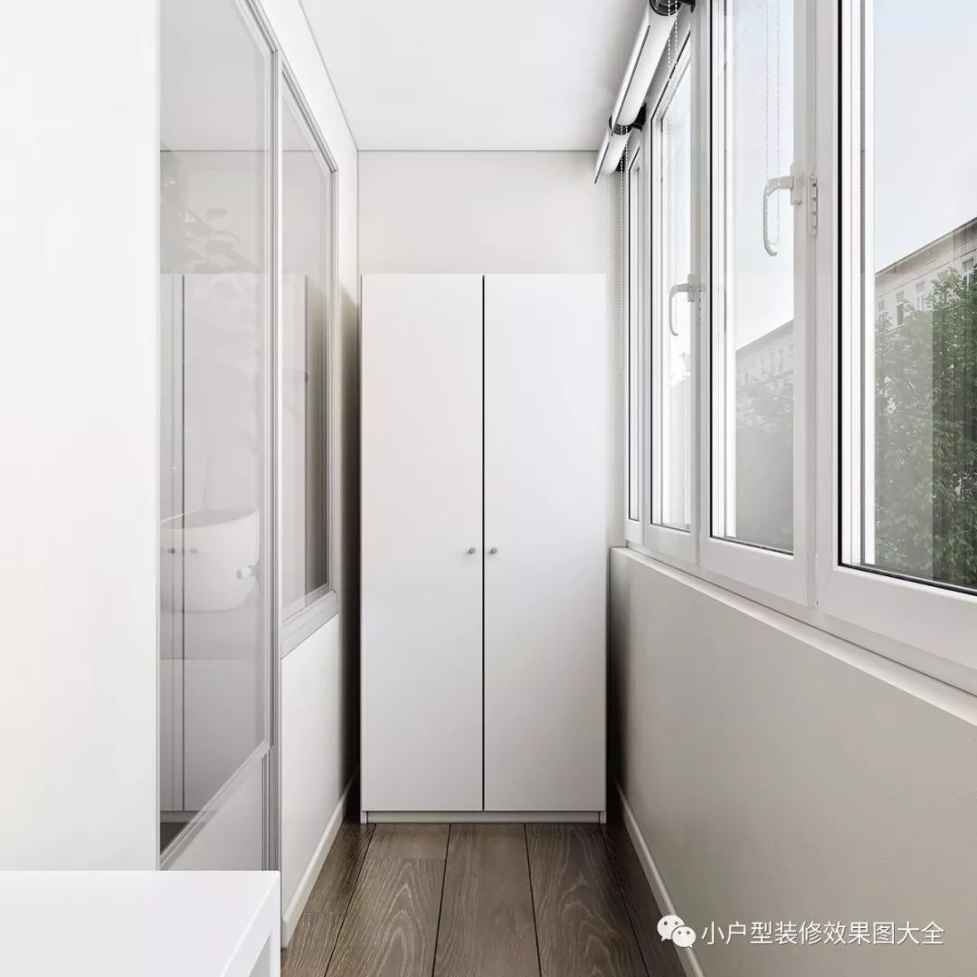阳台包裹了起来,变成类似阳光房的设计,这里有一个小衣柜,还放置了一张休闲单椅。
