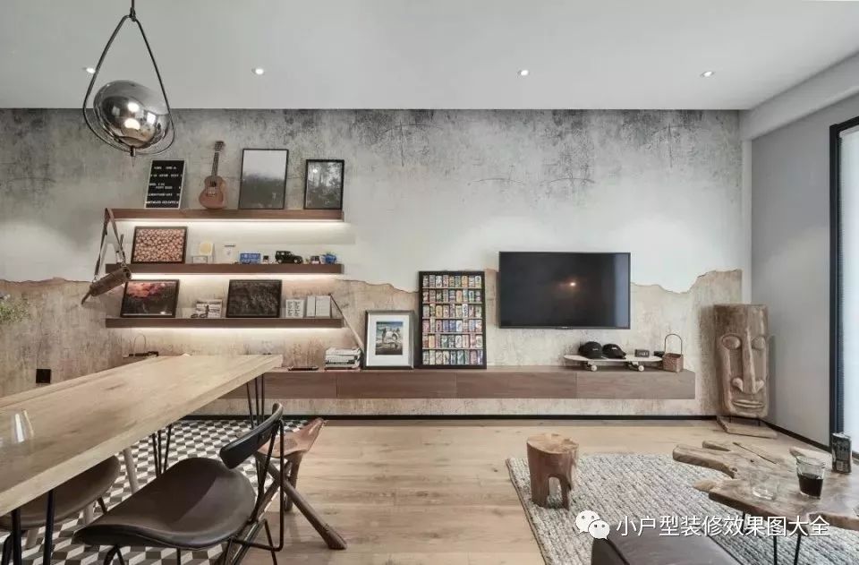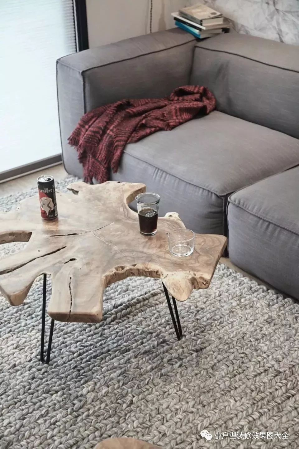 今天,小编要和大家分享的是一个北欧风和现代简约风混搭的小户型装修案例,这不是一个传统样式的小户型装修案例,整个小户型的装修效果很个性但是又很有格调,各种自然造型的木材质家具,深咖色的颜色,各种花砖的装饰,花6.2万半包能达到这种效果,超值!下面装修之家网小编就和大家一起去看看吧!客厅的装修效果图小