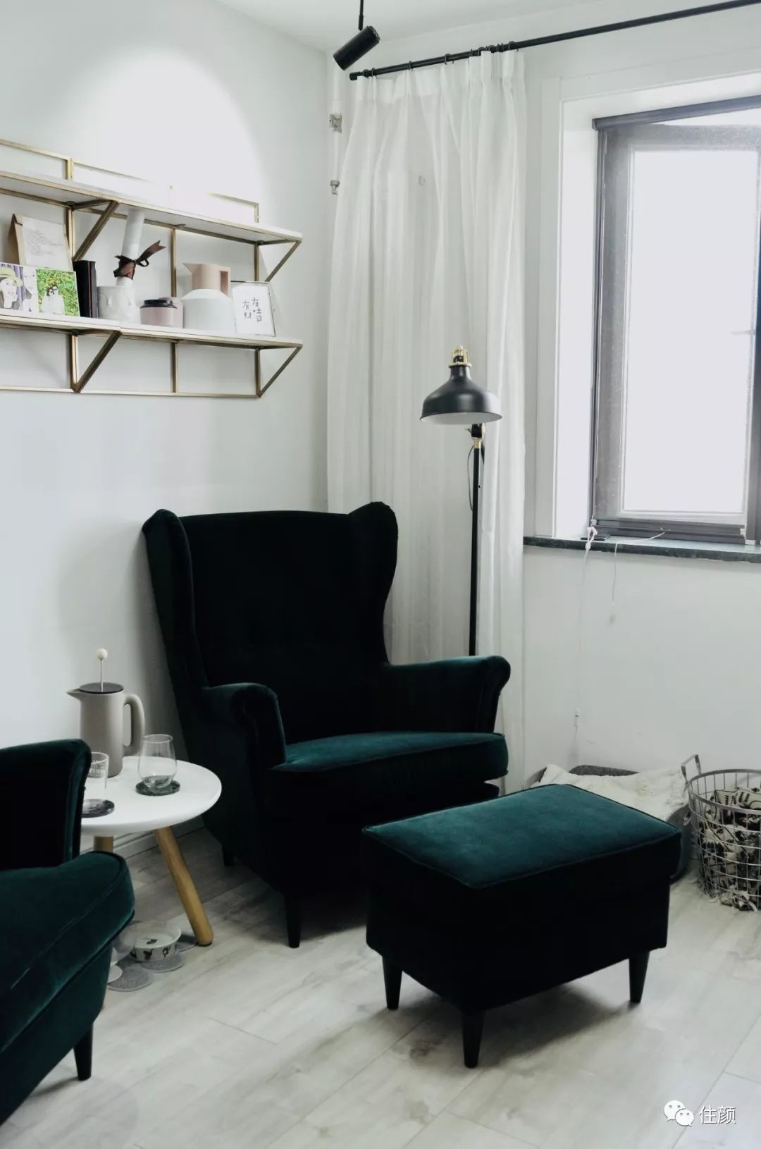 如果你觉得一把单人椅太单薄了,放两把也不错,就个伴会让整体感更加突出。