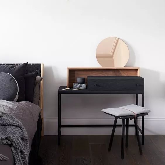 颜姐推荐下图这种灵活翻版的梳妆台,集梳妆,床头收纳,工作台于一体,不容易落灰,把盖子合上又能当工作台和床头柜,简直不能再方便了!