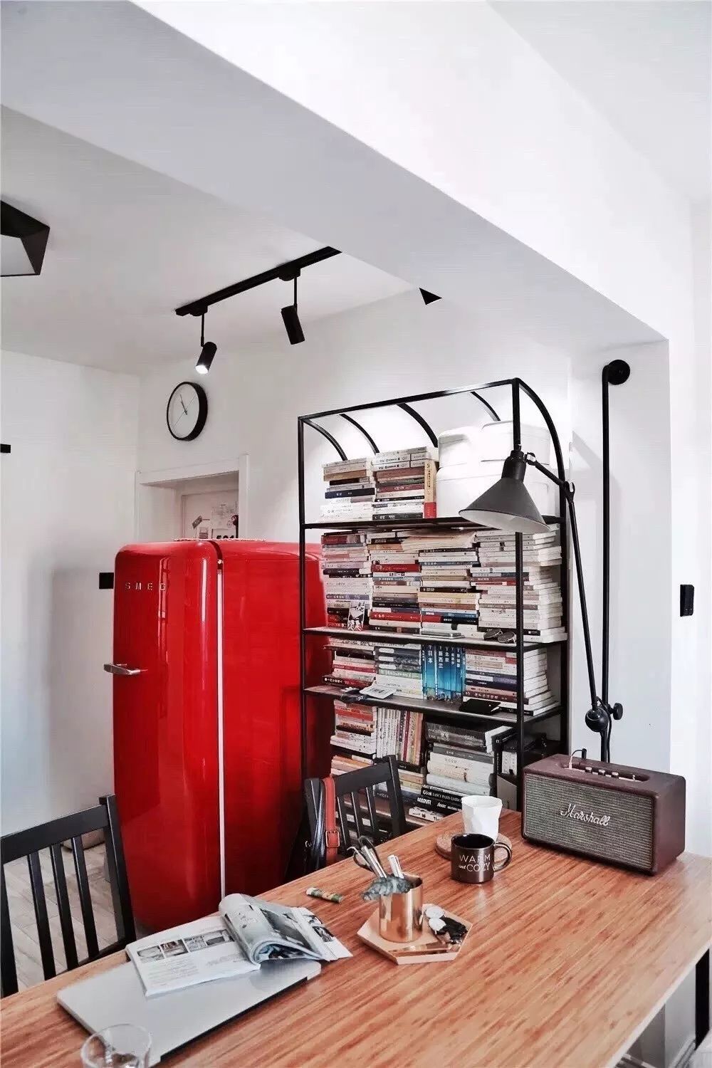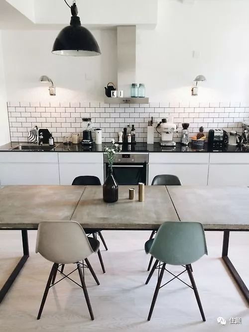 上图就是开篇介绍的那位家居大咖的餐厅空间,大桌子是餐厅也是工作台,工作时夫妻二人面对面一起工作方便交谈,闲暇时候和一帮朋友围坐在一起吃饭聊天,再惬意不过了!
