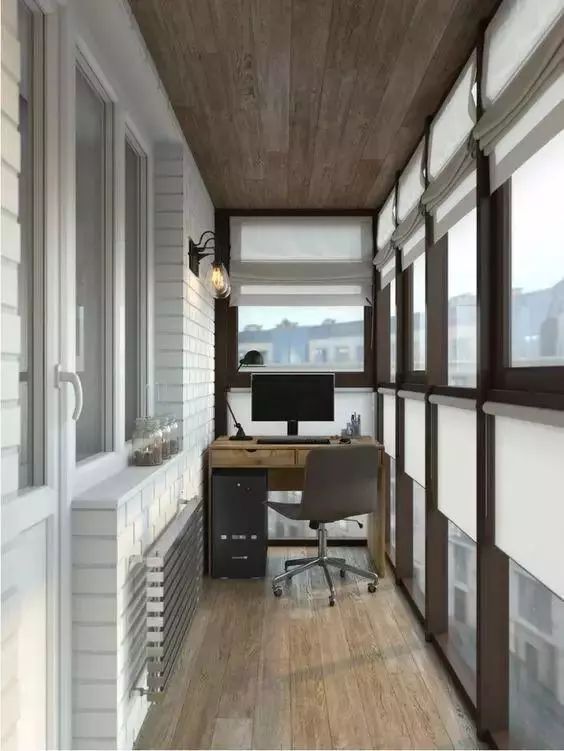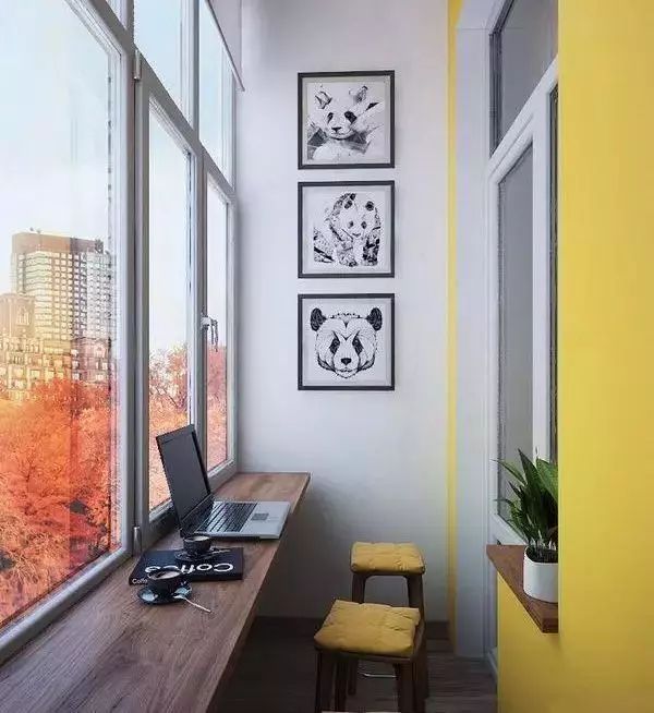 将封闭式阳台设计成家里的办公功能区,不仅能拥有更加安静独立的办公空间,还能在办公之余眺望窗外的美景,劳逸结合。