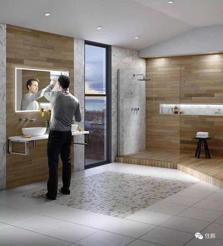 ●镜面的反射亦能让卫浴空间看起来更开阔。