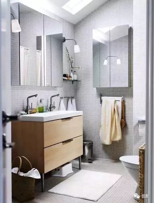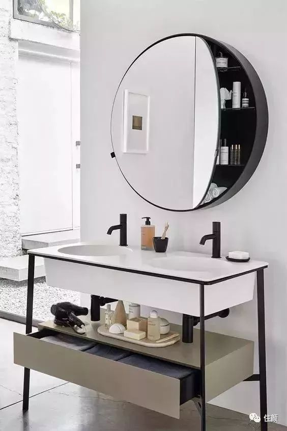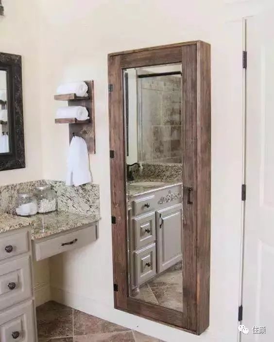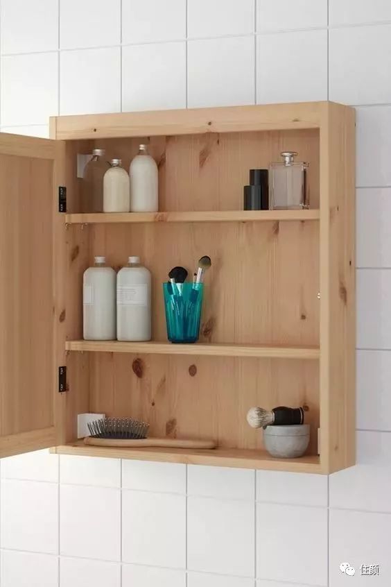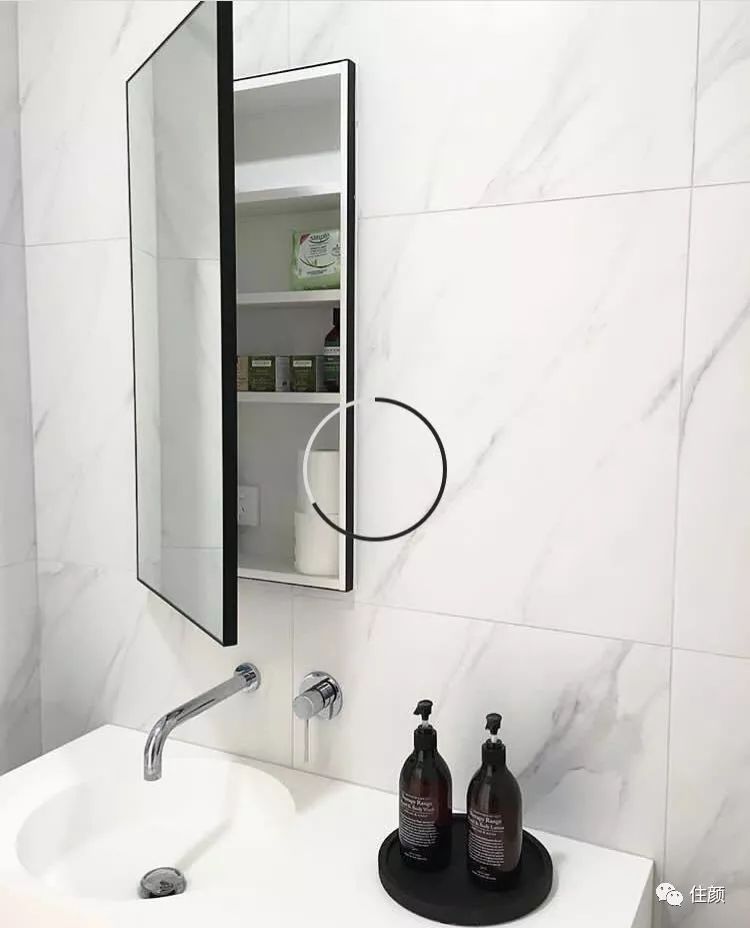 可以在镜柜的内部和开门侧,都装上镜子,取完洗护用品可以不用关柜门,就能对镜使用,也是个比较聪明方便的细节。