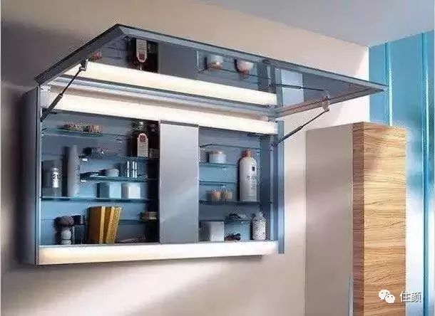 上推式镜柜,通过向上推动,露出柜体内部。这种款式设计相对比较小众。