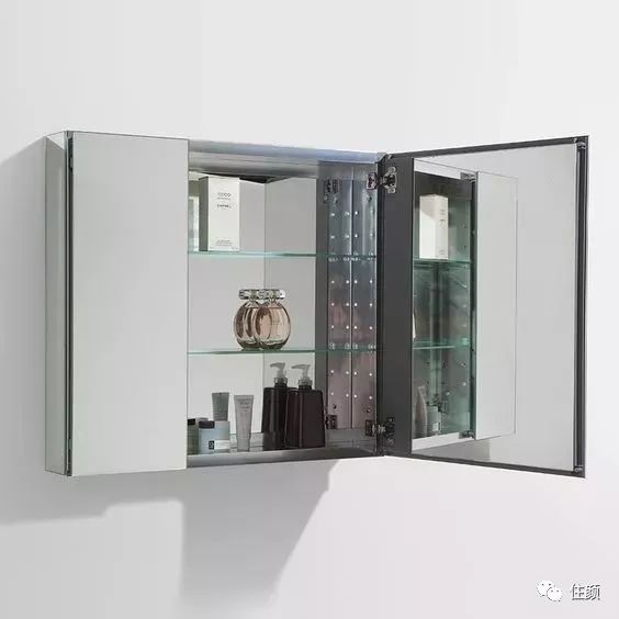 除了敞开式镜柜,如果是全封闭和半封闭式镜柜,需要注意密封性,尤其是在南方,墙面容易有水气,最好是选择有背板的镜柜。同时,也可以放置一些除湿产品在柜内。
